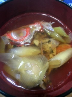 そうそう、しっかりアラ汁まで作ってもらったんだよね〜♪ コチ、イサキ、キンメのお刺身、どれもまったく違った味わいでとっても美味しかった!(≧∀≦)幸せ! |