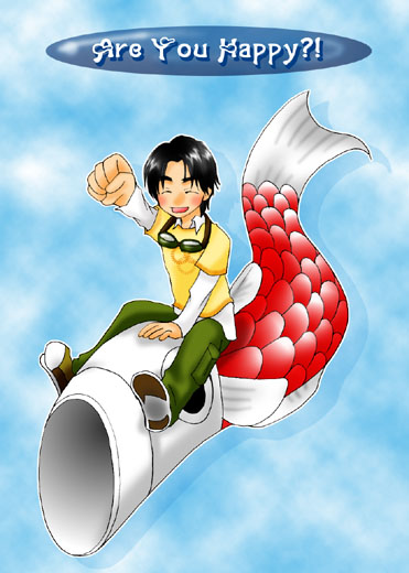 こいのぼりにまたがって空を飛ぶイノッチ。 まさに子供心丸出し!って感じ??