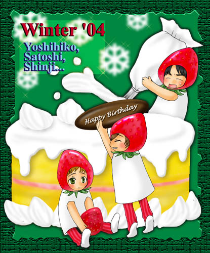イチゴの被り物をさせてみたかっただけなんですがね。 色塗るの楽しかった〜(*^-^*)♪ ケーキの部分、一応こだわってみたんだけど ・・・なんか全然見えなくなっちゃった(T_T)。