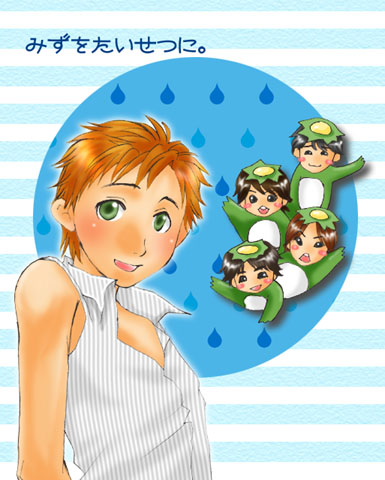 大ちゃんの格好は、流行のクールビズということで(笑)。 久々に口開けて笑ってるトコ描いた気がするなあ。