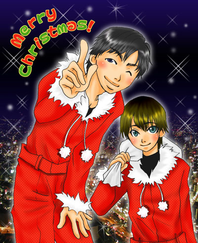 イノとラチがサンタつなぎコスチュームでお出まし。 なんか・・・バイトっぽい?(笑)