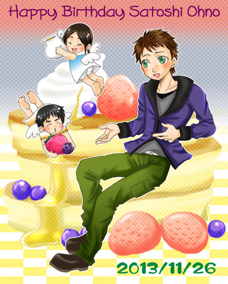 というわけで、毎度おなじみ大ちゃんBDイラスト with 微妙な天使?!(笑) 流行のパンケーキでお祝いですよ。