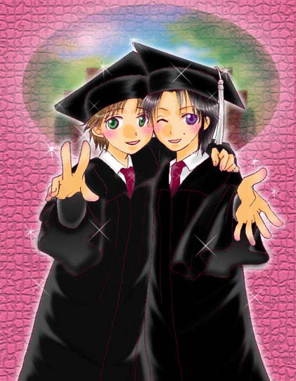 | 大町コンビの英国風卒業式・・・というリクエストにお答えして見ました。 ・・・なんだこりゃ(><)ギャフン! すみません、Lemonさん、私にはこれが限界のようです。色とかメチャクチャです(TдT)。一応サイト巡ってどんな服なのかはチェックして来たりしたんですけどねぇ。なんか黒1色でつまんないかも。あ!ハ○ーポッターみたいなのにすればよかったのか?!・・・って、今更遅いですね。ゴメンナサイ。 24510(つよしこういち)番リク、ありがとうございました。 ばふ@BLUE☆PASSION管理人 |